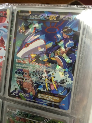 ツイッターとかで見てたんですけど「マグマ団のグラードンEX」「アクア団のカイオーガEX」のイラストがすごく好きで、欲しいな~!と思ってたんですけどレアリティ高いやつだったのでどうせ当たらないでしょって感じで買ってませんでした。