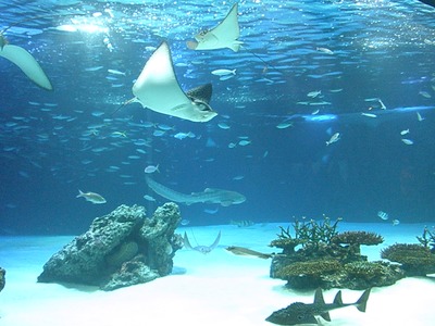 私のお気に入りのおさかなはこの水槽にいる白に灰色の豹柄のエイです。まるいの。